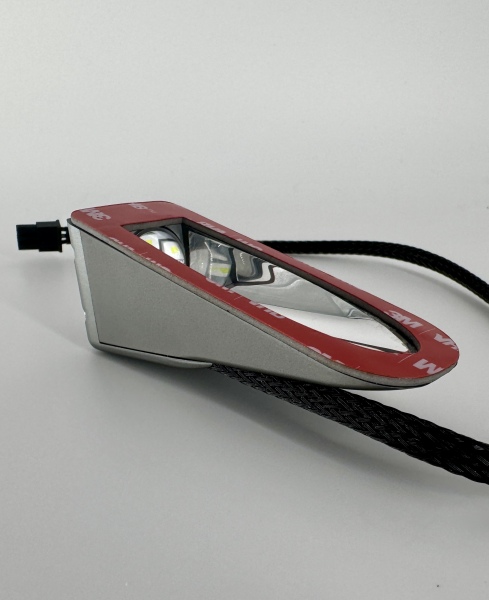 Durch einen im Gehäuse integrierten Lichtwellenleiter, kann die Funktion des Blitzers während der Betriebsstufen, ohne zusätzliche LED im Instrumentenbrett, kontrolliert werden. Durch die Konstruktion des Lichtwellenleiters wird das Licht zerstreut, und ist unaufdringlich, nur bei gezielter Kontrolle wahrnembar.