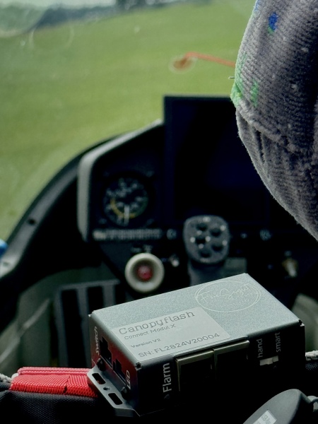 “Panic” Modus, auslösbar durch einen im I-Brett befindlichen Taster oder automatisch durch Flarm. Erhöht die Blinkfrequenz und Intensität um eine vom Nutzer einstellbare Zeitspanne. Das gewährleistet Dir sofortige Sichtbarkeit auch in Verkehrssituationen mit “non FLARM equipped” Verkehrsteilnehmern! An einer Integration der Auslößung des “Panic Mode” in die vorhandene Struktur der XCRemote Knüppelfernbedienung von unserem Partner XCNav werden wir arbeiten!